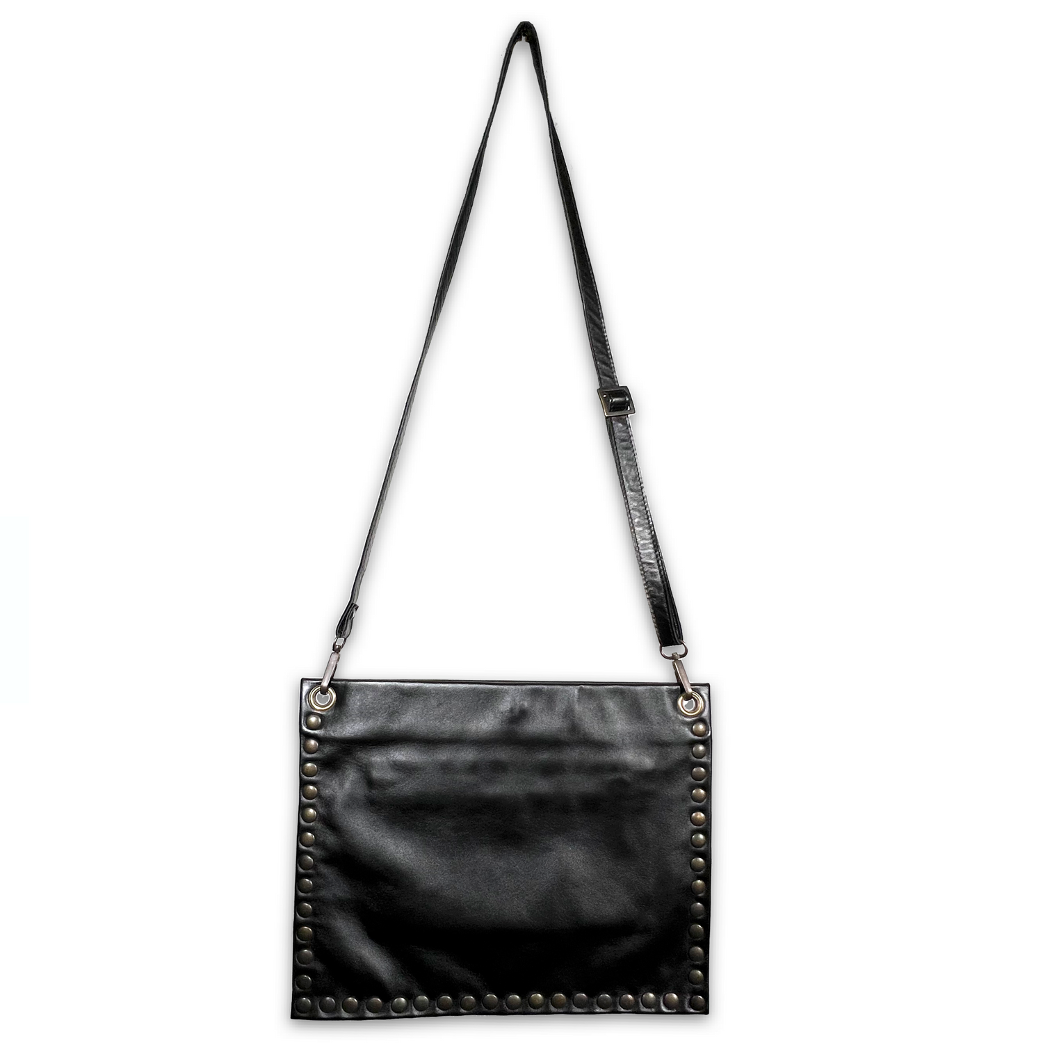 La Metal Bag es una bolsa de 30 cm de ancho x 25 cm alto, con correa ajustable para usarla cross body o al hombro. Perfecta para salir ligera, a diario o por la noche. Tiene forro y bolsillo interior con cierre, y remaches por ambos lados, en color plata y en latón viejo.