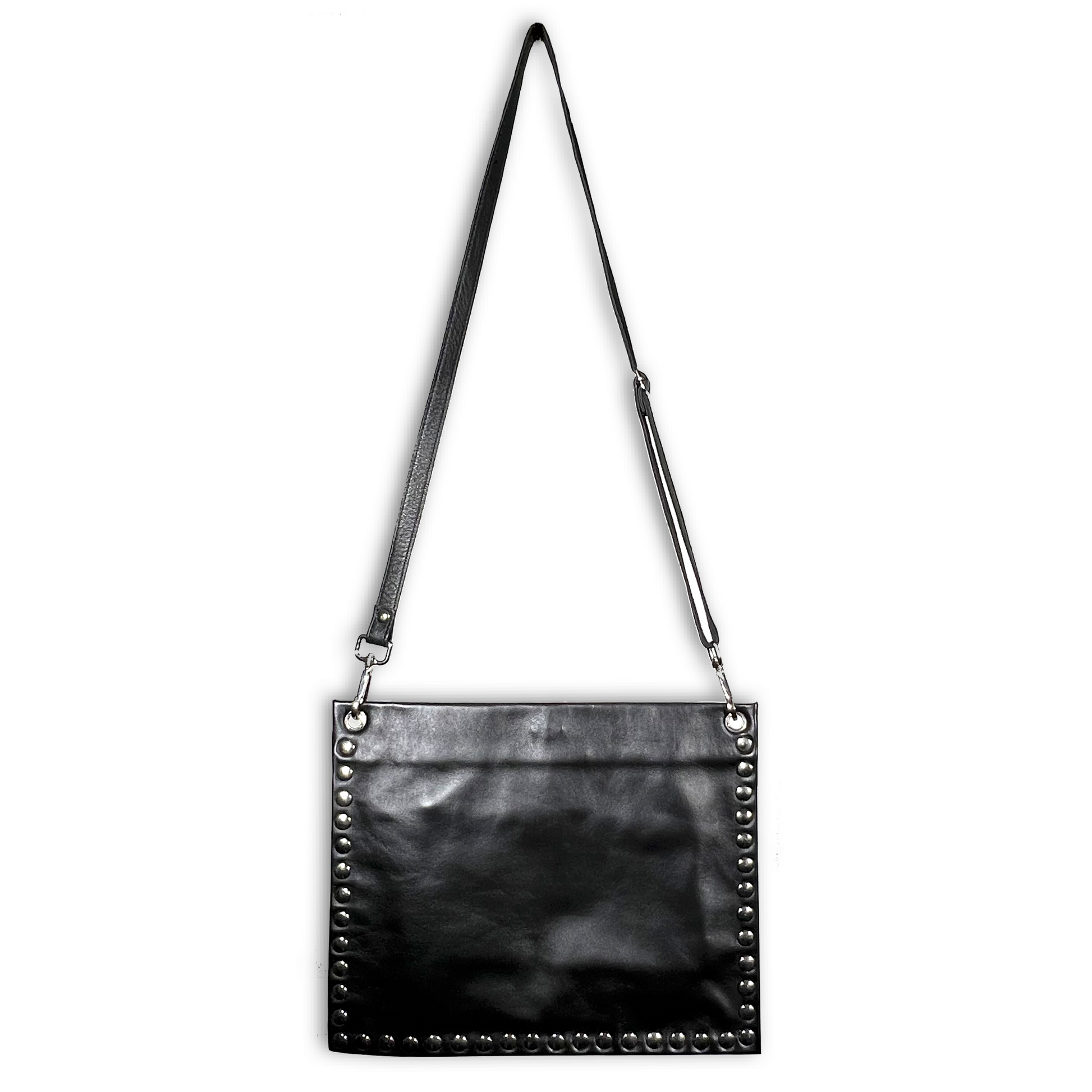 Ajusta la bolsa de remaches metálicos cross body a tu medida, y sal ligera.